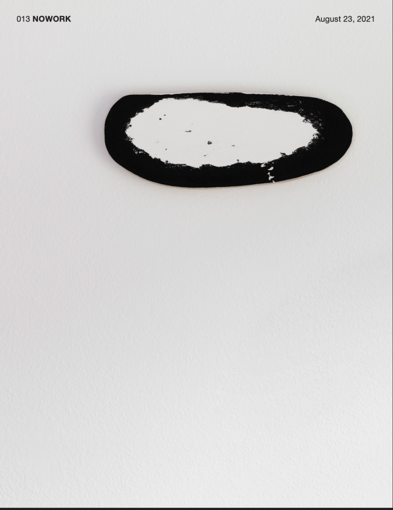 R.D. Laing’s words rattle on repeat, casting a mantra across each disrupted panel, the woman-made and machine-made colliding to the point where each forfeits their origin story. Overlaid, disjointed, and distracted. Dennison takes the “blank canvas” and turns it into “blank screen”, the digital footprint and e-comm grid offering structure and order. In a world where everything unfurls without consequences, constraint can be comforting. Under the weight of a steel-toed boot, the one you haven’t purchased yet, you can click away infinitely, but there’s only so many options. Touchscreens rendered computer mouses mostly obsolete, though the target of our longing remains un-evolved, still evading any tactile grip…